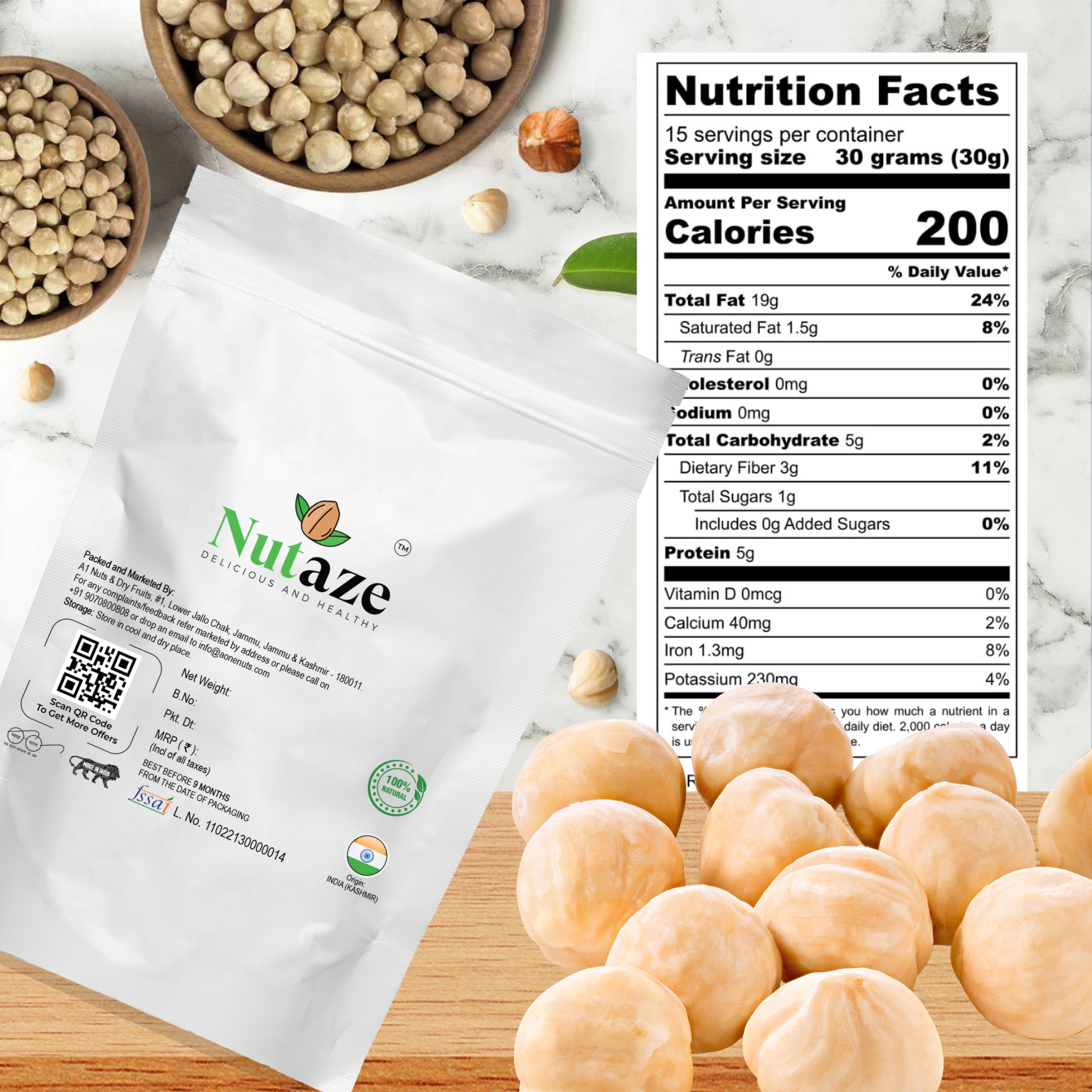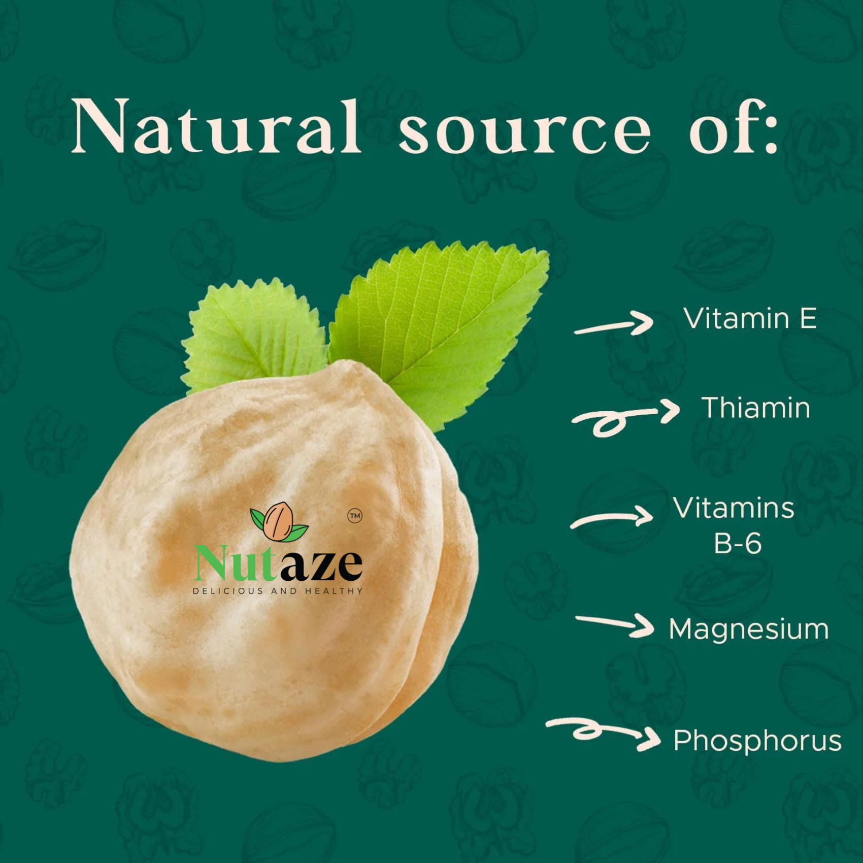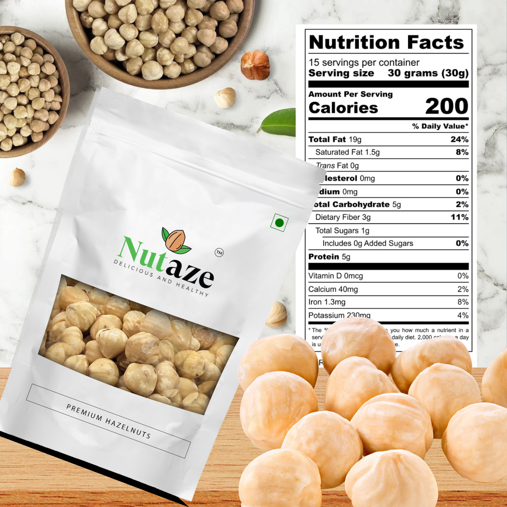 Nutaze Premium Hazelnuts deliver a rich, naturally sweet flavor and a satisfyingly crunchy texture. Carefully selected from high-quality crops, these hazelnuts are cleaned, sorted, and packaged to preserve maximum freshness and nutrition. Whether you enjoy them as a healthy snack, blend them into nut butter, or use them in desserts and salads, Nutaze Hazelnuts offer a delicious boost of natural energy. Each serving is packed with vitamins, healthy fats, and antioxidants — making this a smart and wholesome choice for everyday snacking.